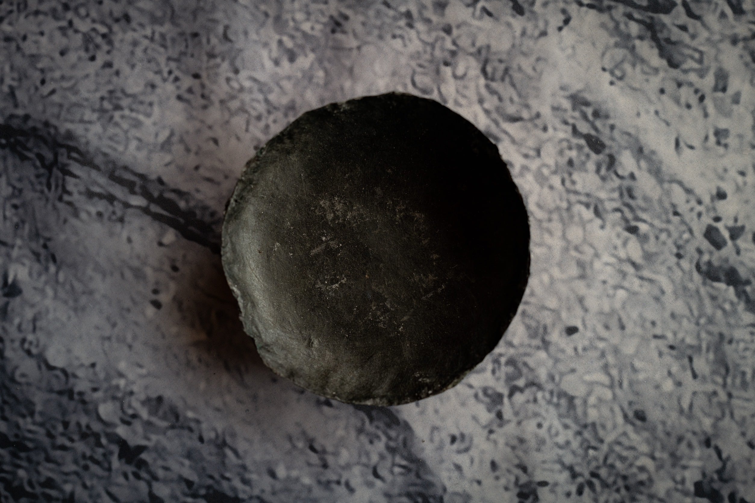 • This work is made using mixed materials such as washi paper, wax, urushi lacquer, and charcoal.